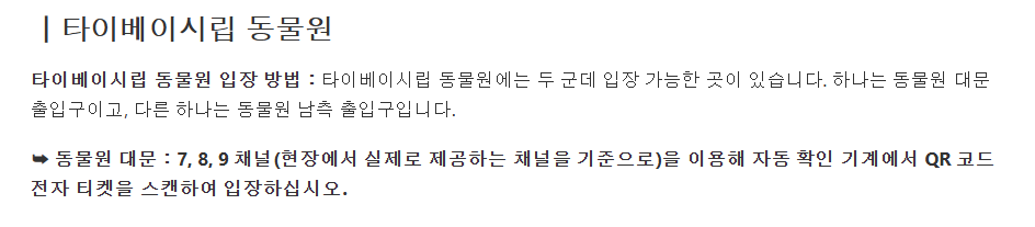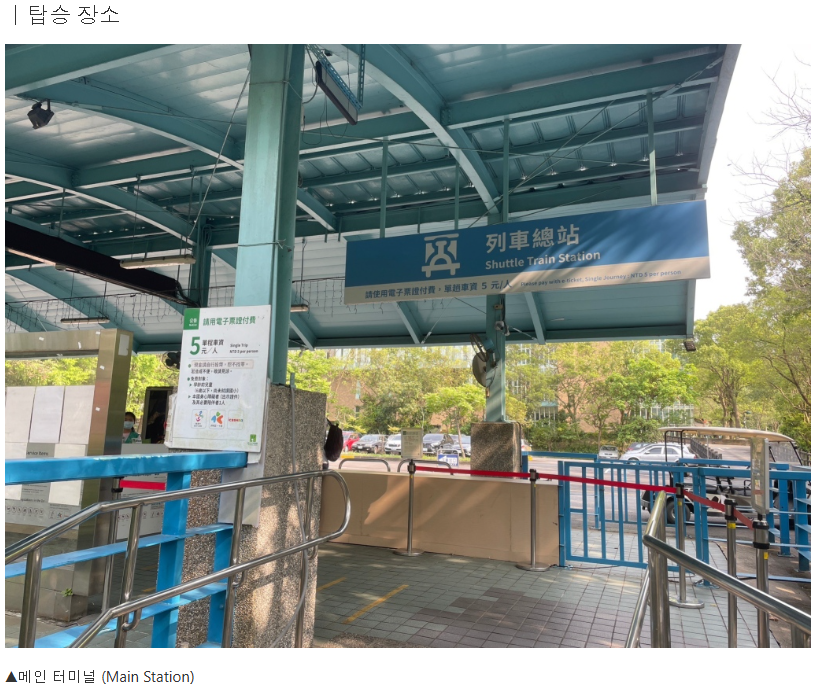 |타이베이 시립동물원 영업시간 원내 산책로: 09:00–17:00 (16:00 입장 마감) 동물 전시 관람: 09:00–16:30 휴원일: 음력 섣달 그믐날, 매년 6월 하순 중 일부 기간 ※ 방문 전 공식 일정 확인 필수 (예: 2020/6/15부터 10일간 휴원) |마오콩 철관음 차 향 주머니 체험 체험 시작 10분 전까지 카운터에서 체크인 필수 정시에 체크인 및 입장해야 하며, 지각 시 체험 업체의 판단에 따라 입장이 제한될 수 있습니다. |동물원 셔틀 열차 (편도) 타이베이 시립 동물원은 정문과 남쪽 입구(남역) 두 곳에서 입장할 수 있습니다.