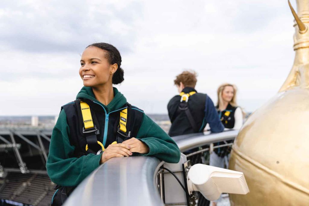• 정장을 입고 토트넘 홋스퍼 스타디움의 상징적인 황금 수평아리 위로 올라가 보세요.