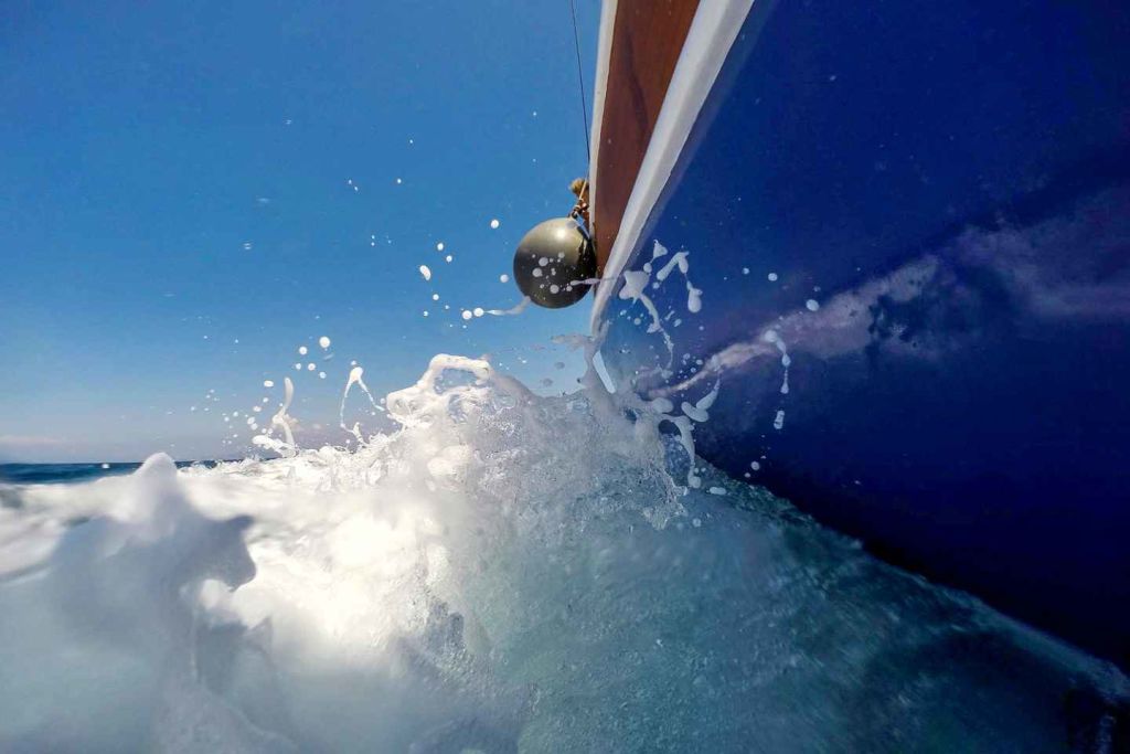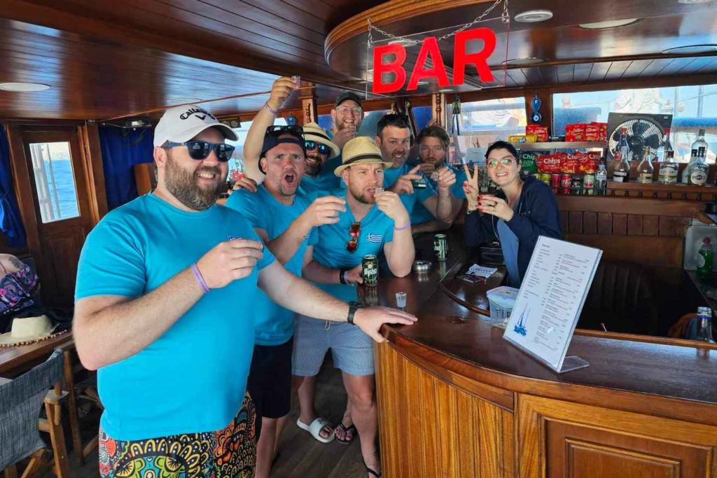 보트로 돌아와 돼지고기 또는 닭고기 수블라키, 샐러드, 차치키, 빵이 포함된 뷔페 점심을 드세요. 고기 대신 콩과 돌마데를 사용한 채식 옵션도 있습니다. 점심 식사 후에는 인근의 양식장을 방문해 야생 돌고래를 구경하세요.