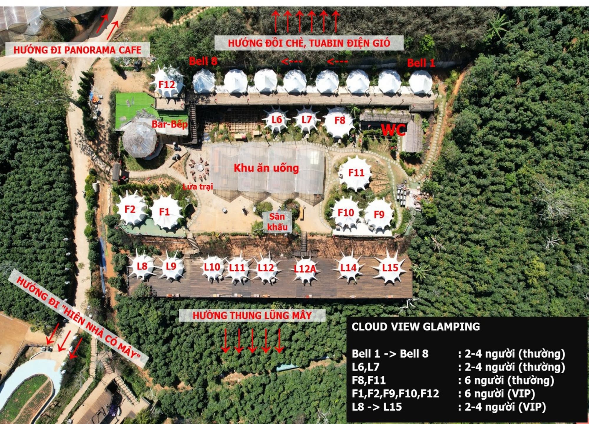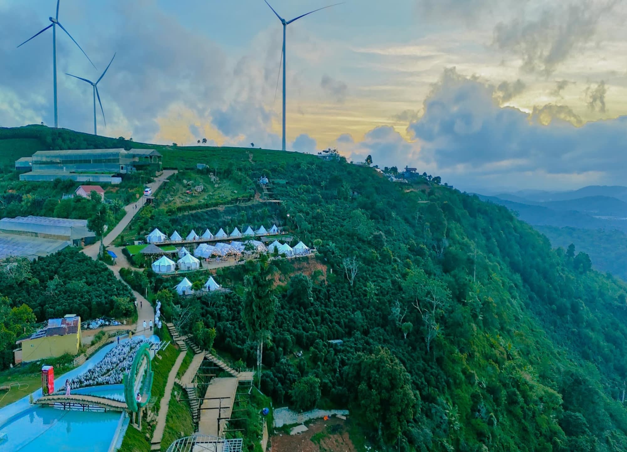 달랏 시내에서 25km 정도 차량으로 50분정도 거리의 산 위에 위치하고있는 글램핑장 입니다.