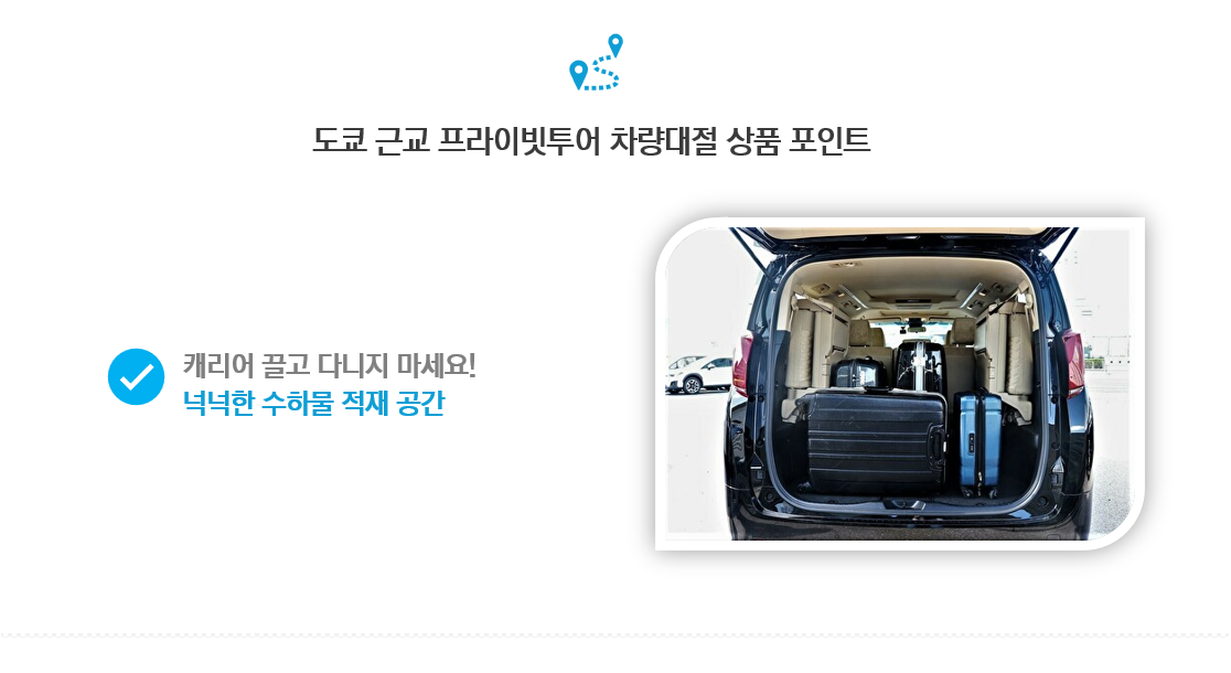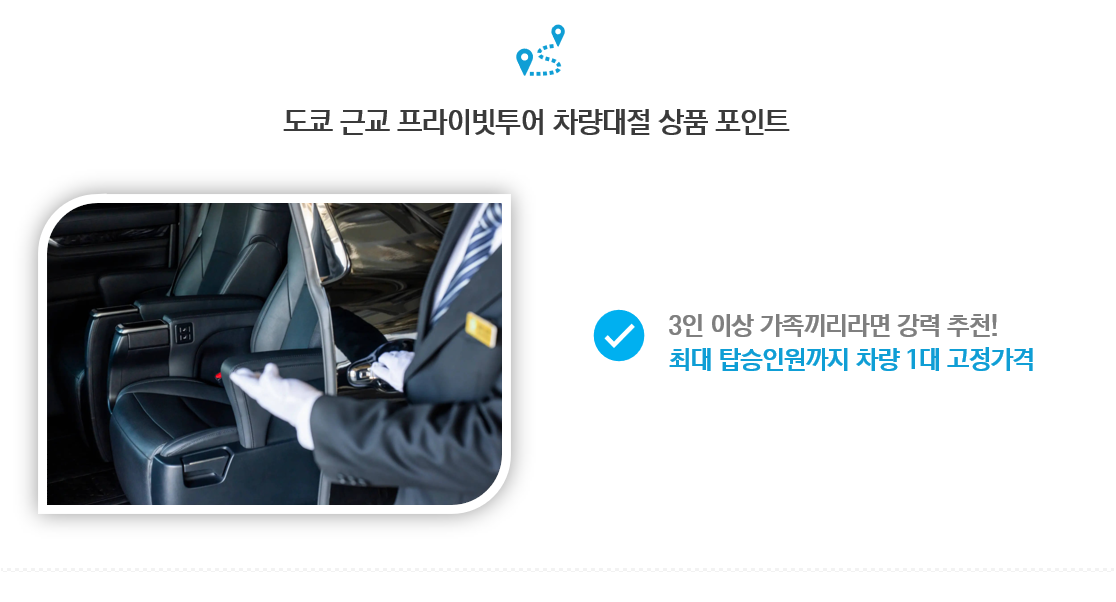 - 단독차량으로 일본여행의 처음부터 끝까지 완벽한 프라이빗 여행을 즐겨보세요.
