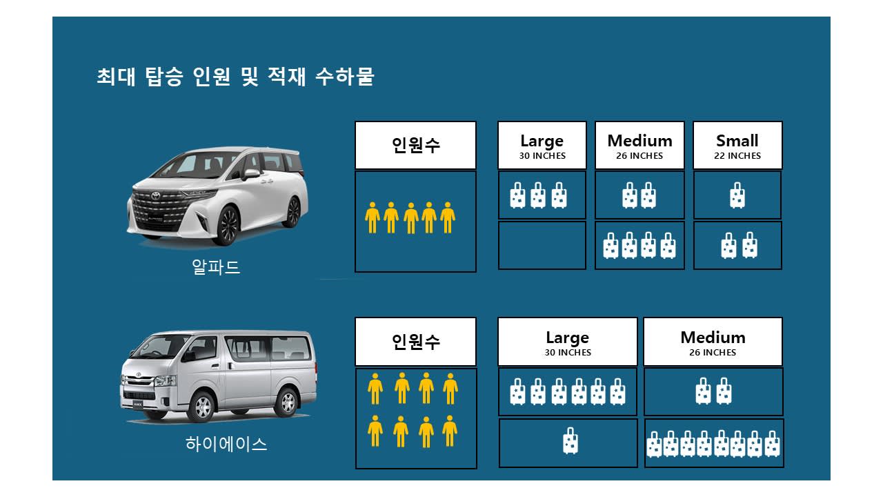 * 도요타 알파드(ALPHARD) 6인승 / 하이에이스(HIACE) 9인승