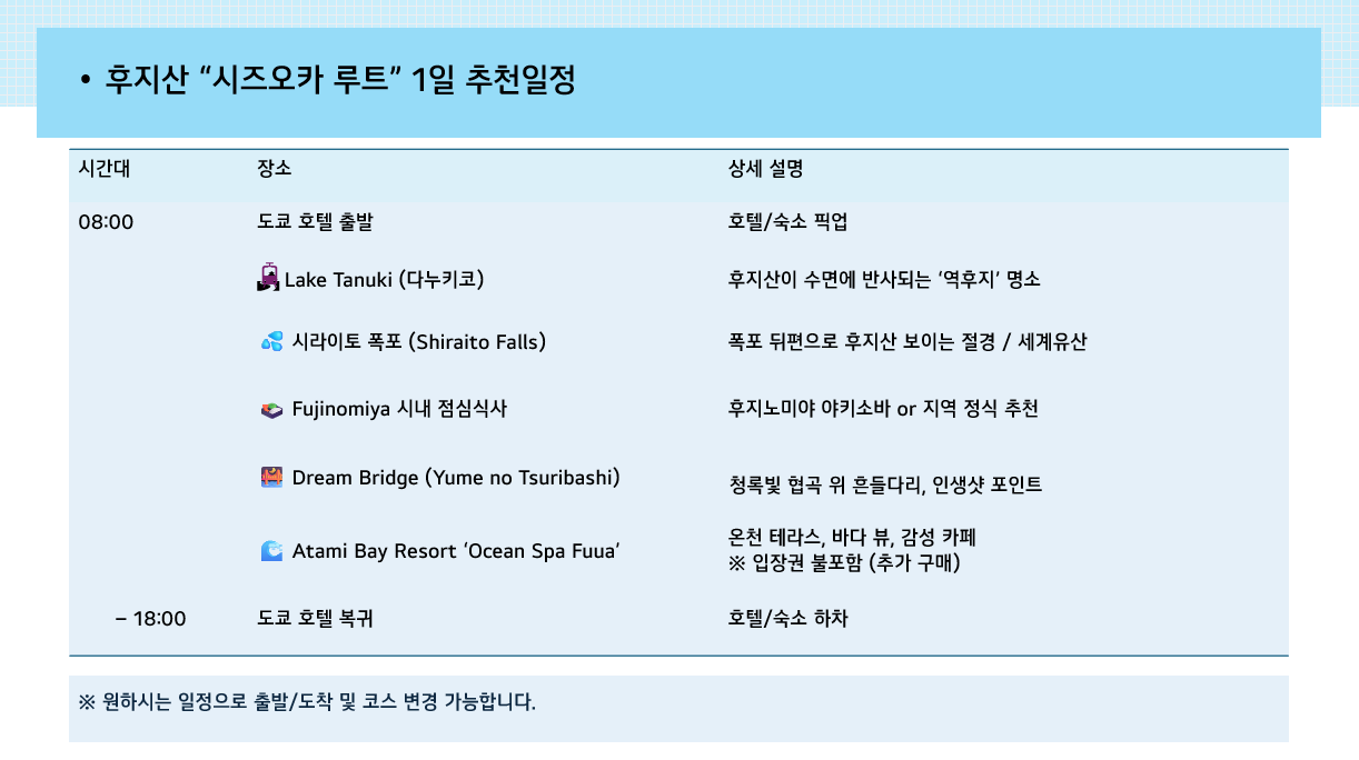 [도쿄 근교 여행] 후지산 시즈오카 루트 프라이빗 투어 단독차량 10시간 (차량1대가)
