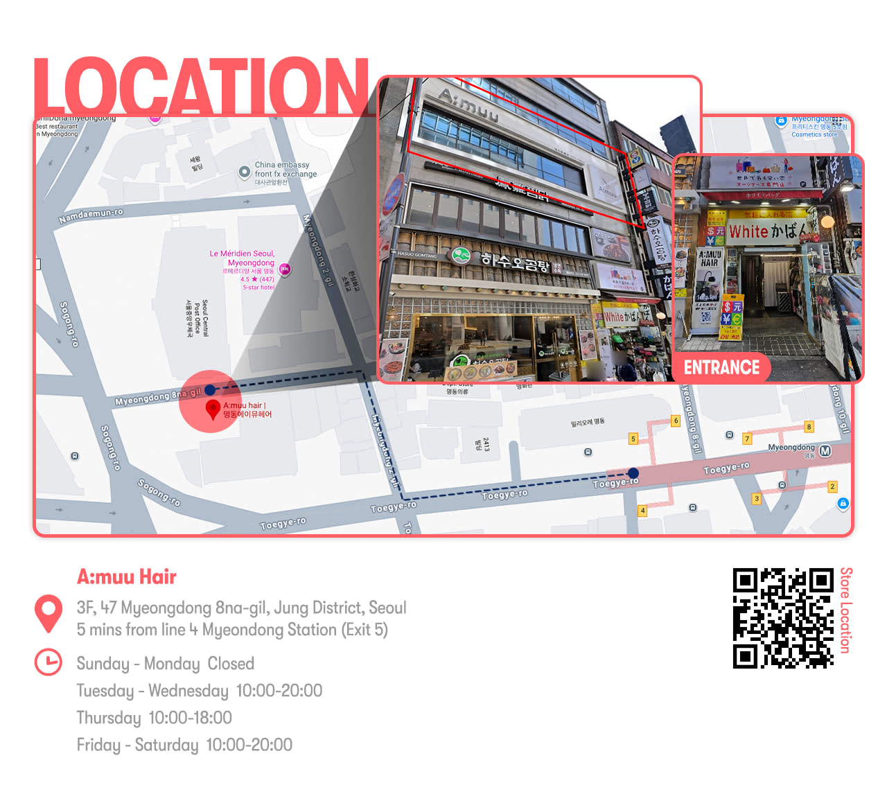 * 20년 이상의 경력을 자랑하는 숙련된 디자이너 * 서울의 뷰티 중심지, 명동에 위치 * 모든 헤어 유형에 맞춘 맞춤형 상담 제공 * 한국식 메이크오버 체험으로 관광객들에게 인기 * 현지 및 해외 고객들로부터 꾸준히 높은 평가