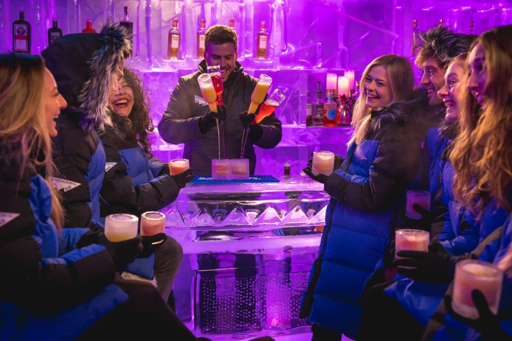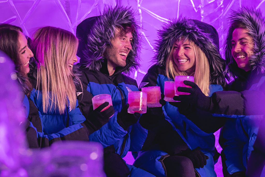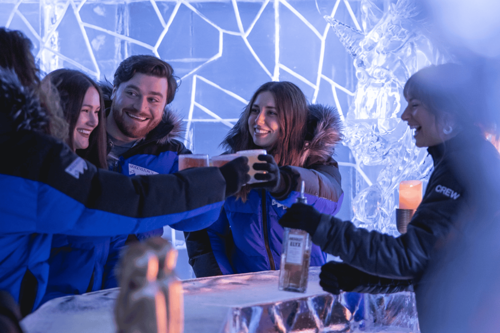 퀸스턴 아이스 바 입장권으로 저녁 식사 전 한 잔, 스키 후 칵테일 또는 심야 음료를 즐겨 보세요. 약 30톤의 유리 같은 얼음으로 만든 바를 구경하세요. 선택한 패스에 따라 얼음 잔에 제공되는 다양한 목테일 또는 칵테일 중 하나를 맛보고 겨울 코트를 입고 아늑하게 지내세요.