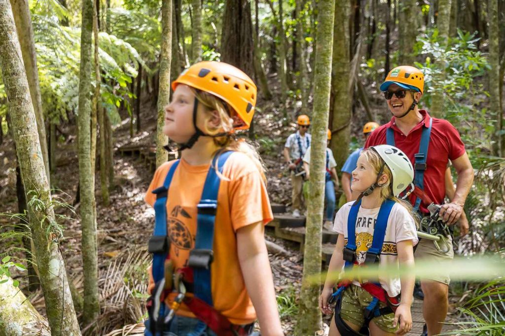 뉴질랜드 토종 수풀의 숲 캐노피 위를 활공하세요.