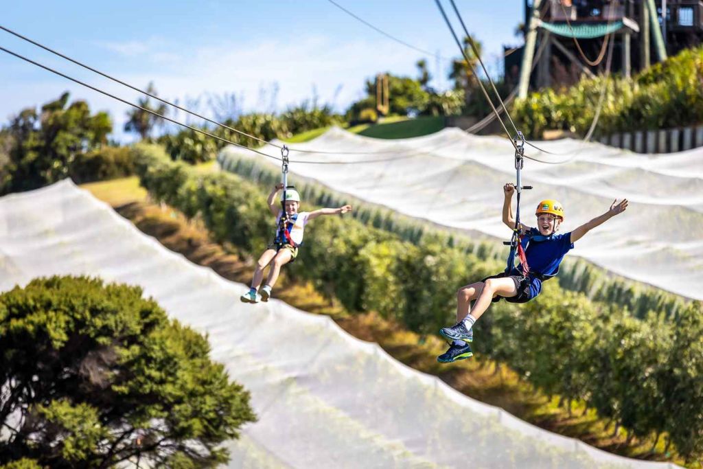 길이가 각각 650피트(200미터) 이상인 3개의 듀얼 짚라인을 따라 하늘을 날아보세요. 파트너 또는 친구와 함께 나란히 활강하며 포도밭과 재생 중인 뉴질랜드 토종 수풀의 멋진 경관 위를 부드럽게 미끄러져 내려가 보세요.
