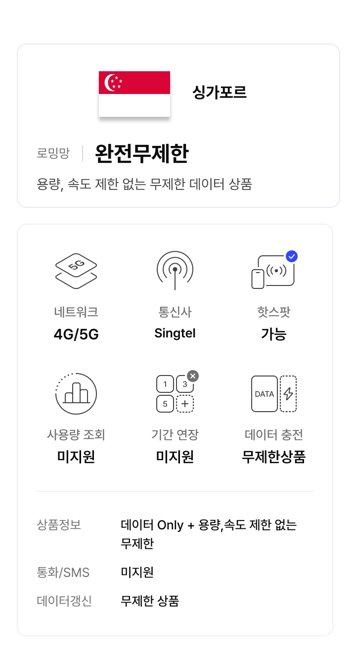 싱가포르 어디서든 초고속 데이터를 무제한으로 사용하세요!