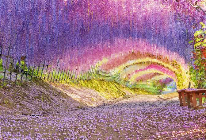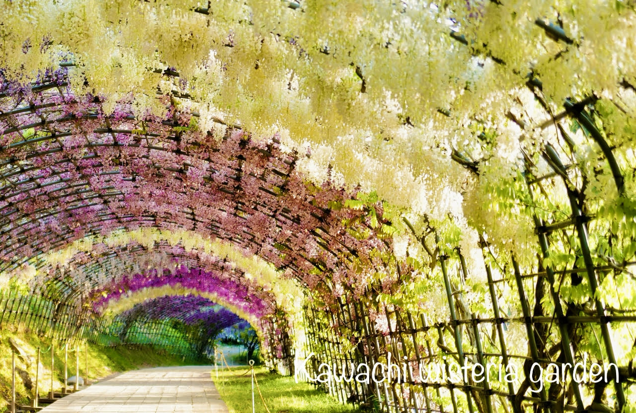 * 가와치 후지엔: 꿈같은 꽃 터널이 잊을 수 없는 사진 촬영 순간을 선사하는 봄 한정 등나무 천국입니다.