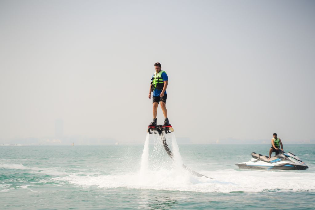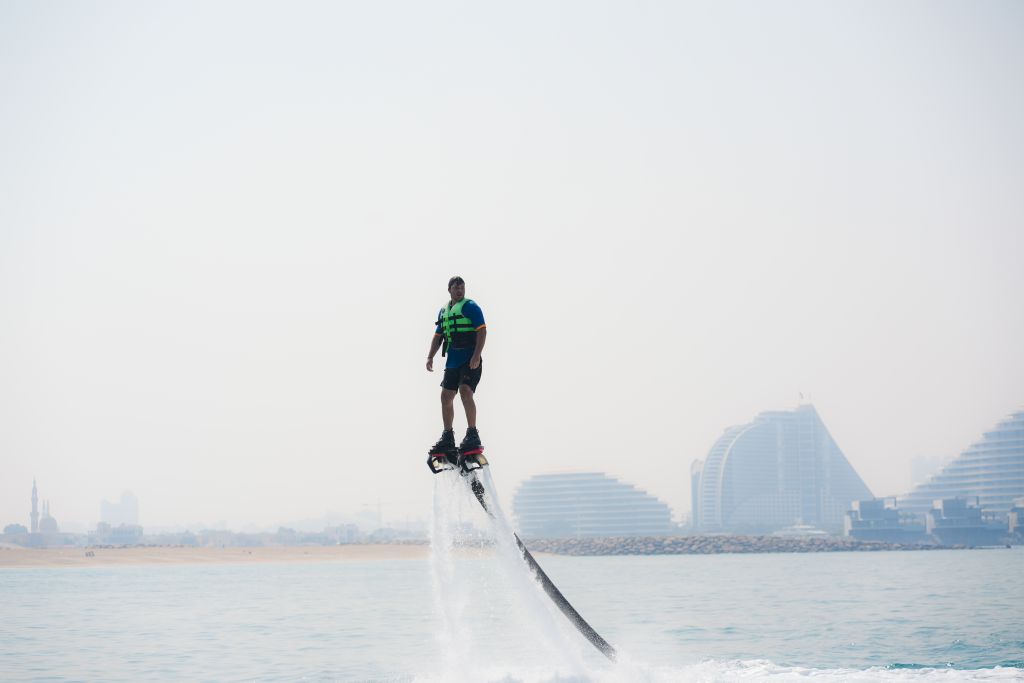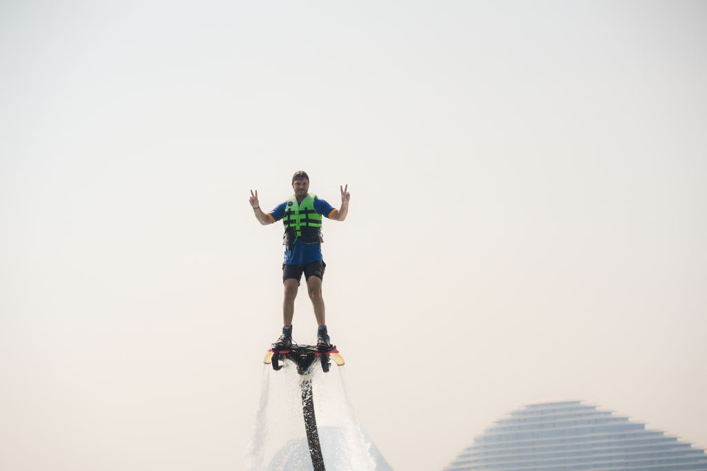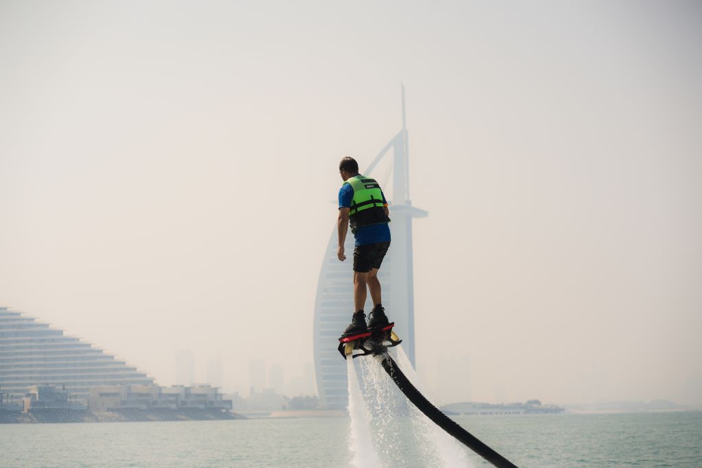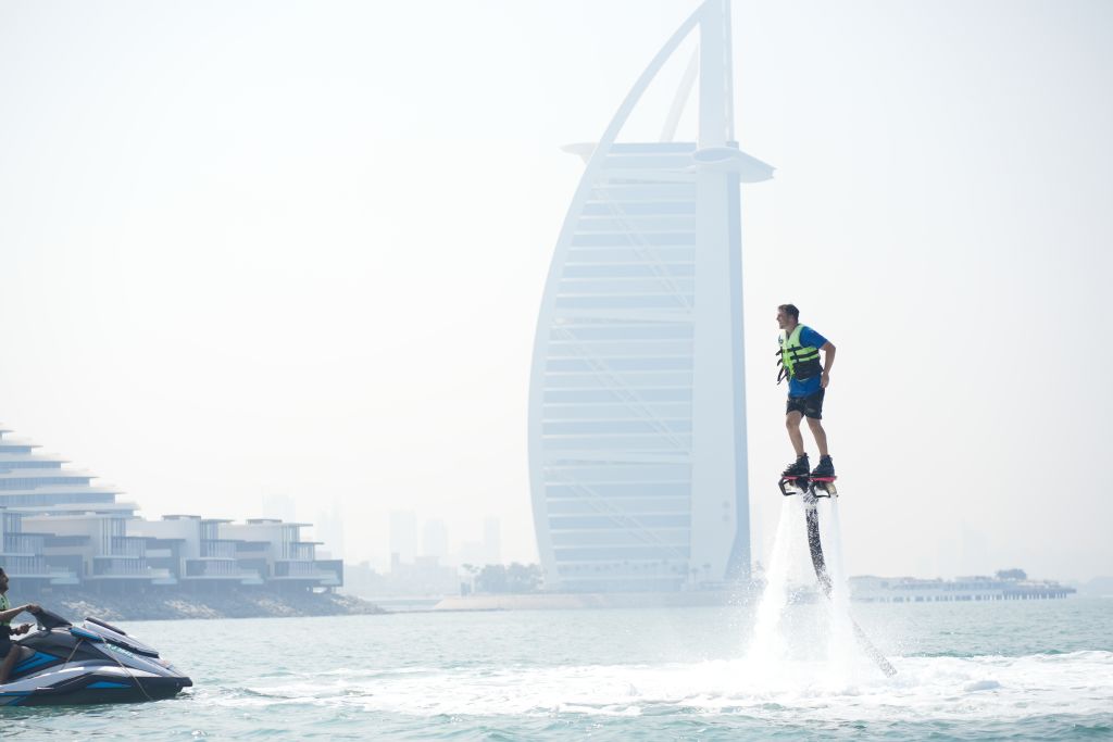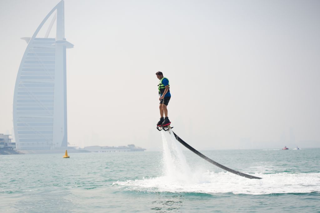 아라비아만 상공에서 최대 6미터까지 점프하고, 날고, 묘기를 선보이세요.
