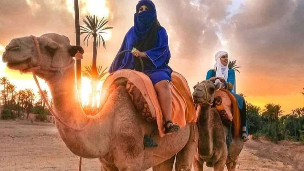 호텔 픽업으로 여정을 시작하여 도시 외곽의 울창한 야자수 숲으로 향합니다. 전통적인 사하라 의상을 입고 낙타에 올라 우뚝 솟은 야자수와 향기로운 오렌지 나무 그늘 아래 구불구불한 길을 따라 현지 가이드를 따라가세요.