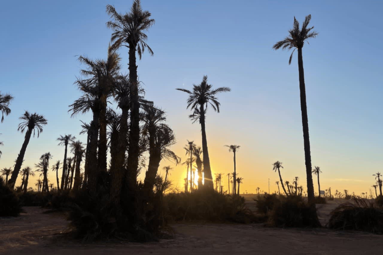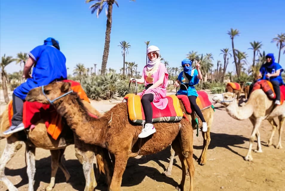마라케시의 번잡함에서 벗어나 가이드와 함께하는 낙타 타기를 통해 팔메라이의 고요한 아름다움에 푹 빠져보세요.