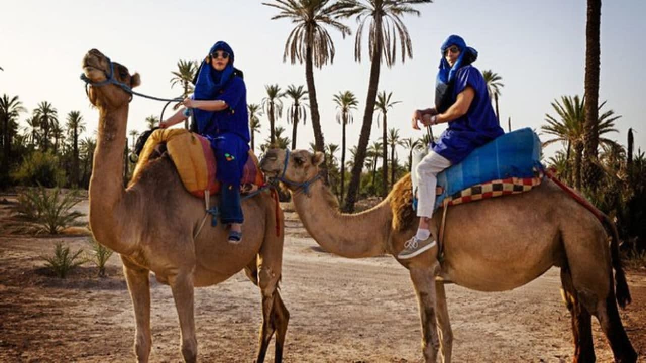 * 마라케시의 팔메라ie에서 낙타를 타고 여행하세요.