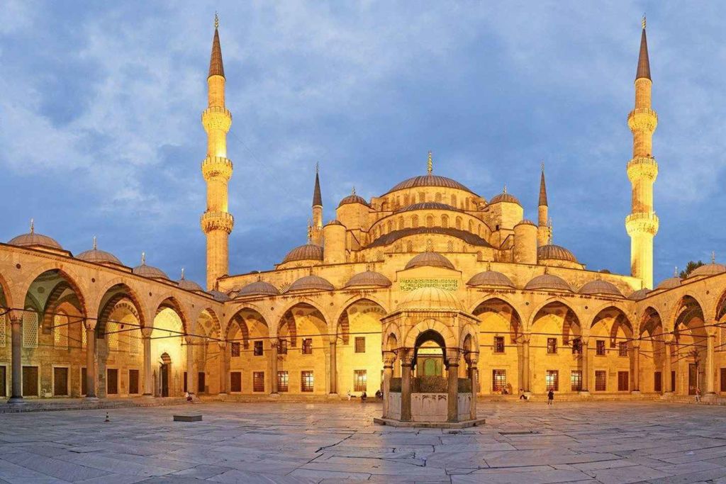 아야 소피아를 지나면 아야 소피아 맞은편에 위치한 블루 모스크로 향합니다. 푸른색 이즈닉 타일과 독특한 여섯 개의 첨탑으로 유명한 이 모스크는 술탄 아흐메트를 기리기 위해 지어졌습니다.
