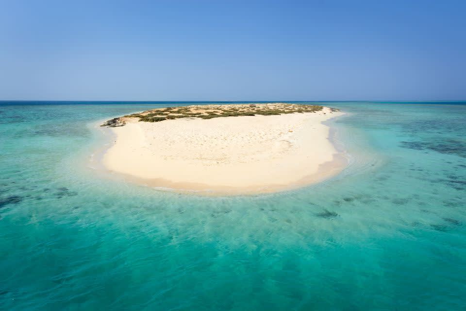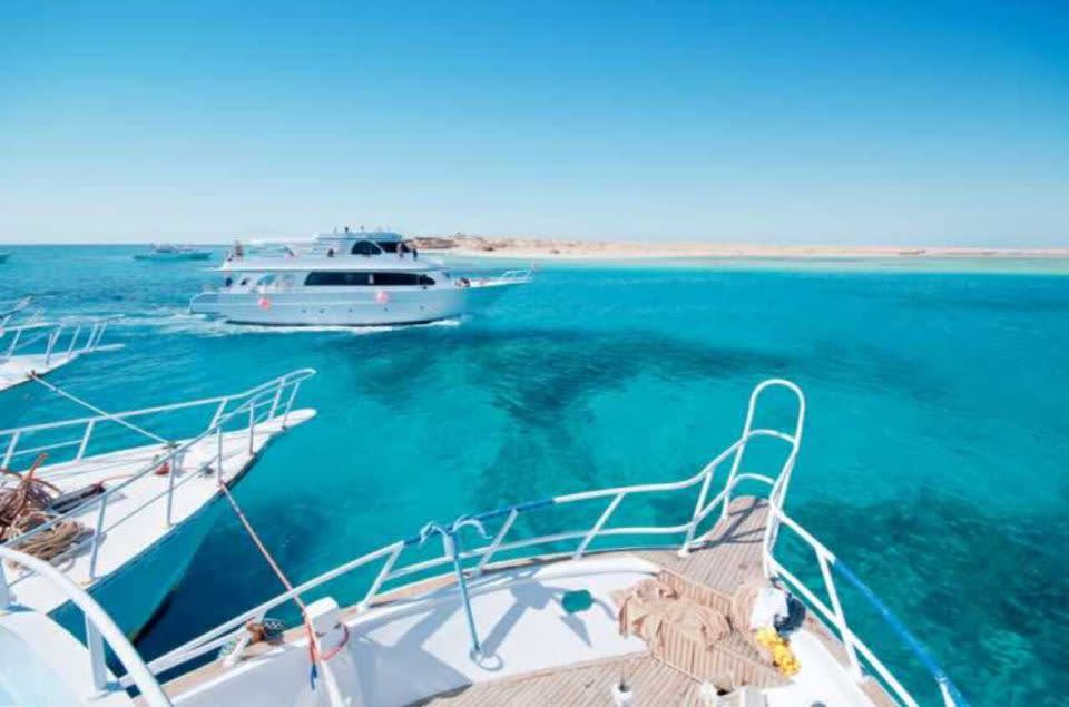 하마타 섬으로 향하는 보트에 탑승하여 스노클링 가이드에게 인사하고, 때 묻지 않은 홍해의 열대 바다로 항해를 시작하세요.