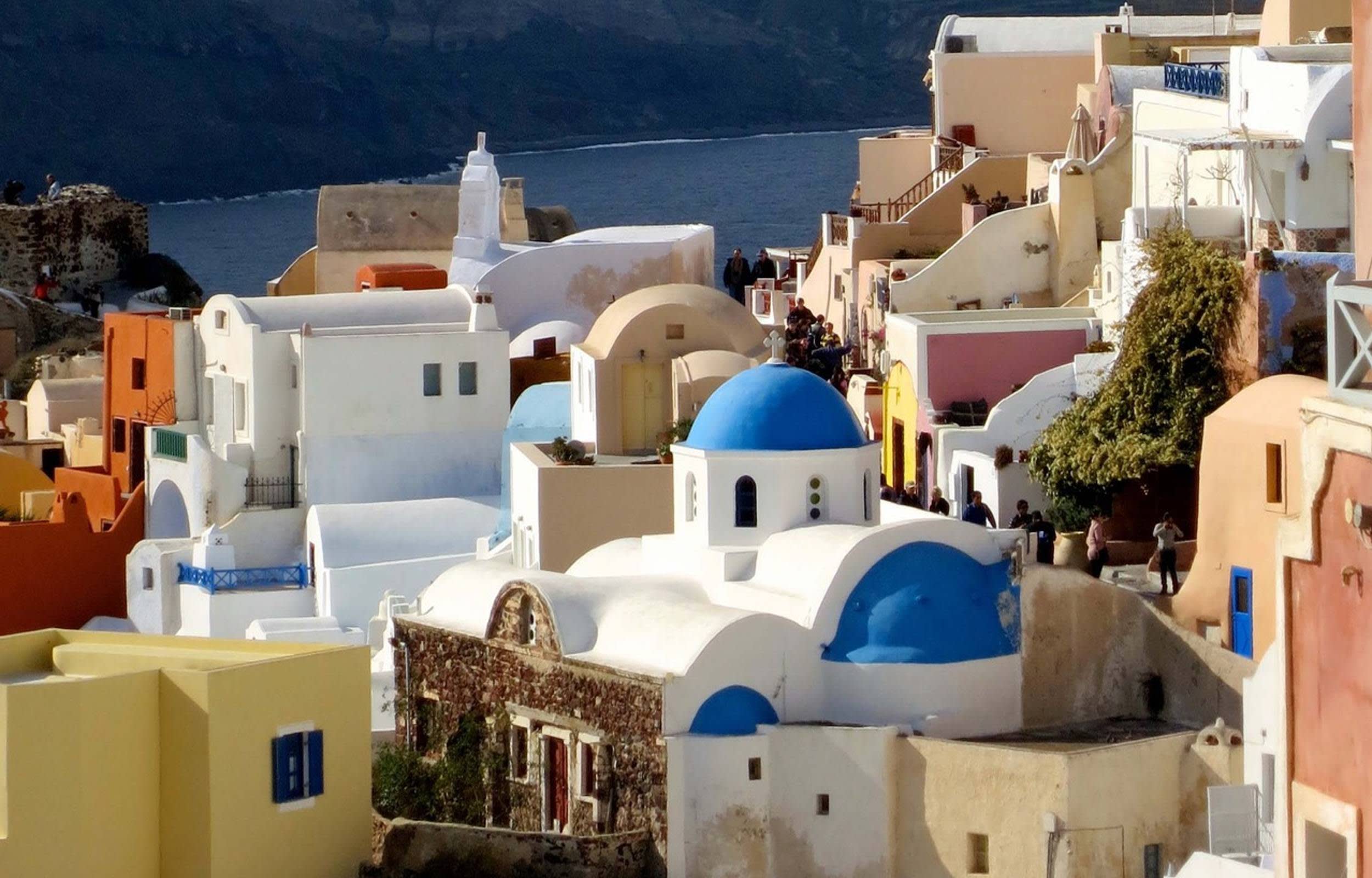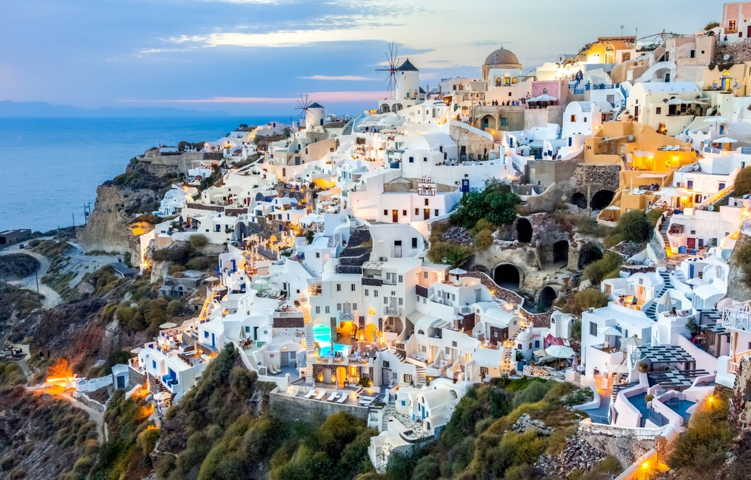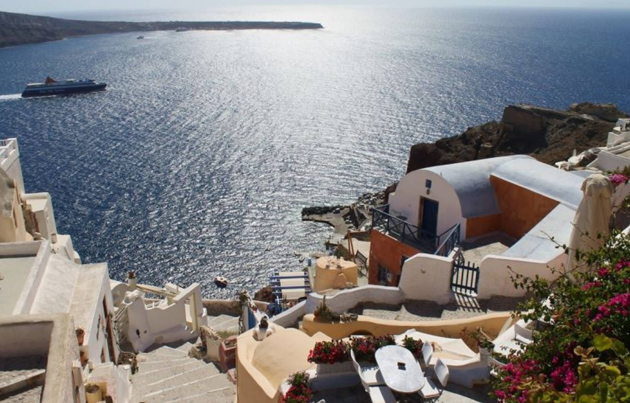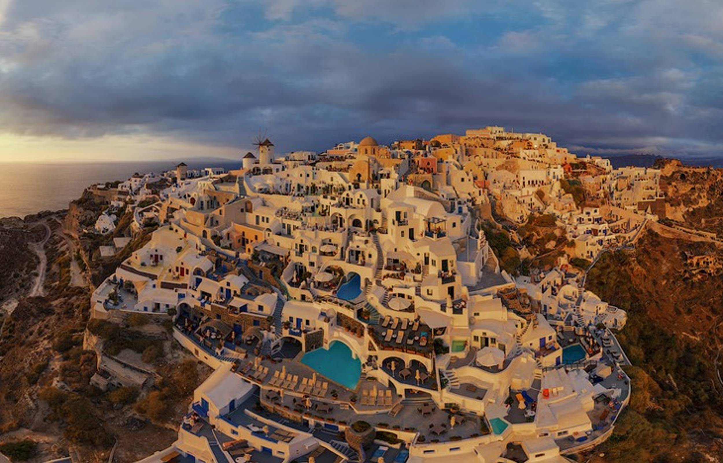 * 산토리니의 명물인 화산 칼데라와 반짝이는 에게해의 탁 트인 전경을 감상하세요.