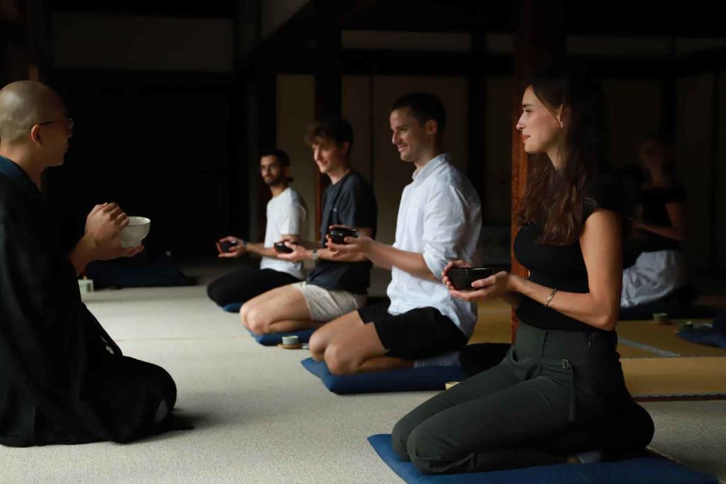 이 체험은 선종 사원인 주쇼인의 16대 주지인 니시다 에이테츠와 함께 좌선 명상을 할 수 있는 특별한 기회를 제공합니다. 좌선 후에는 에이테츠가 전통 제철 과자와 함께 제공되는 말차(가루 녹차)를 즐기는 방법을 안내해 드립니다. 또한 사진작가가 체험의 순간을 포착하여 기념품으로 사진 데이터를 보내드립니다.