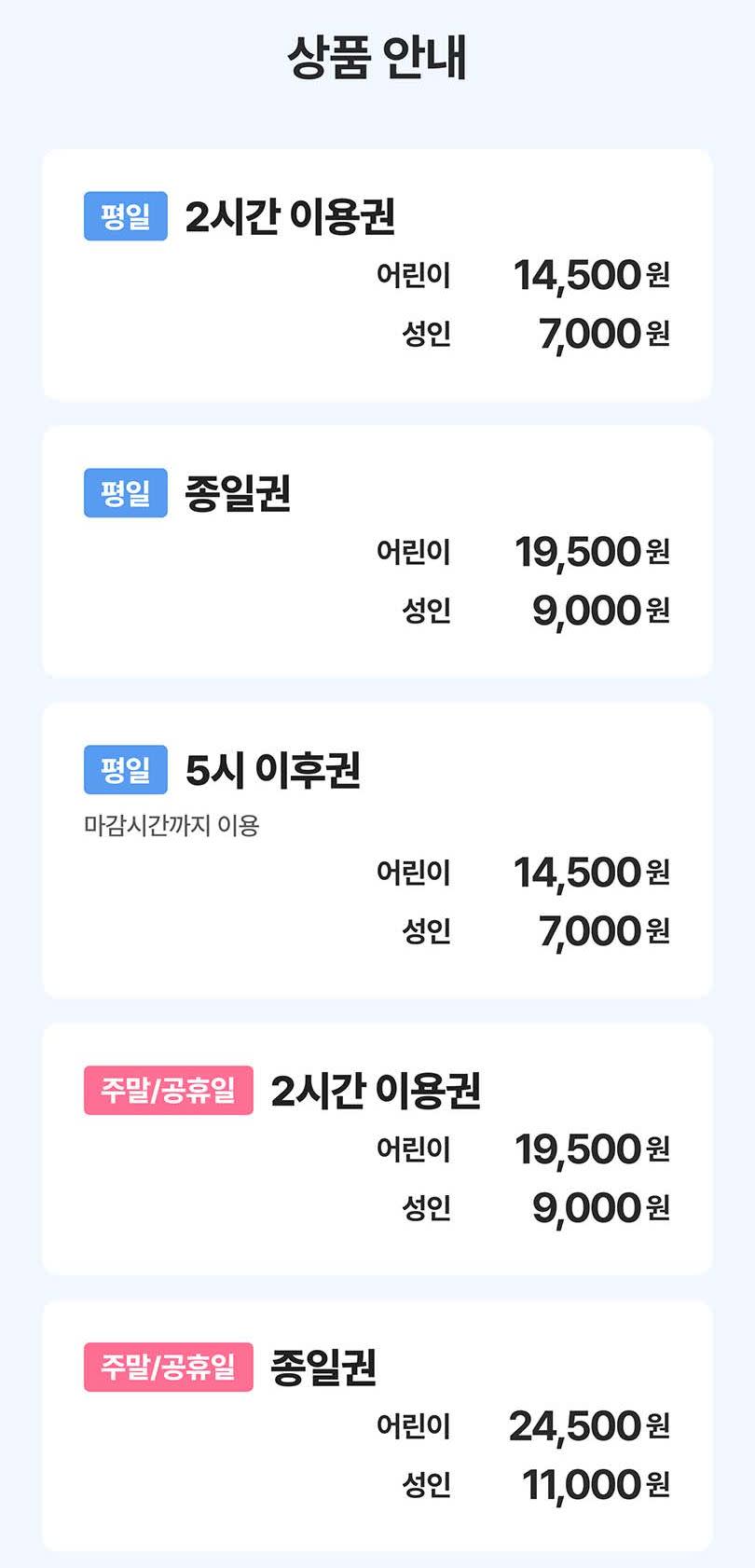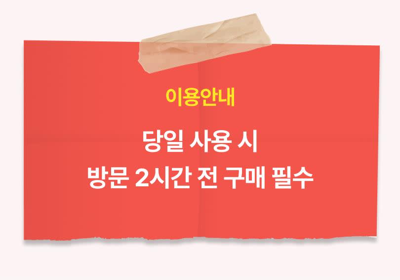 - 당일이용 가능여부 : 당일 이용 가능 최소 이용 2시간 전 티켓 구매 필수
