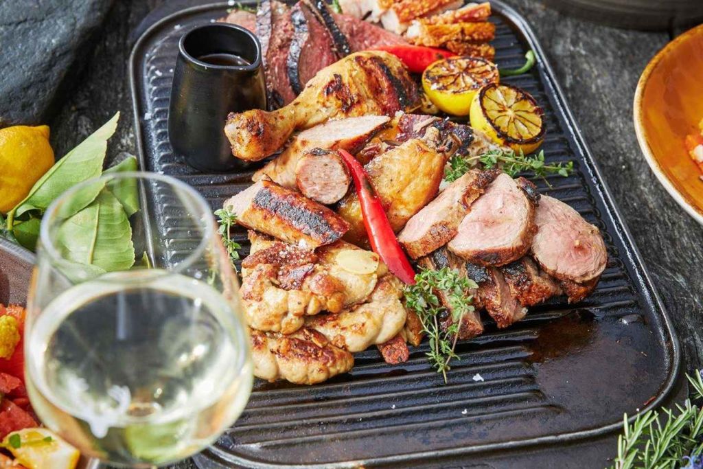 그릴에서 지글지글 구워지는 현지 농산물의 맛있는 향을 음미해 보세요.