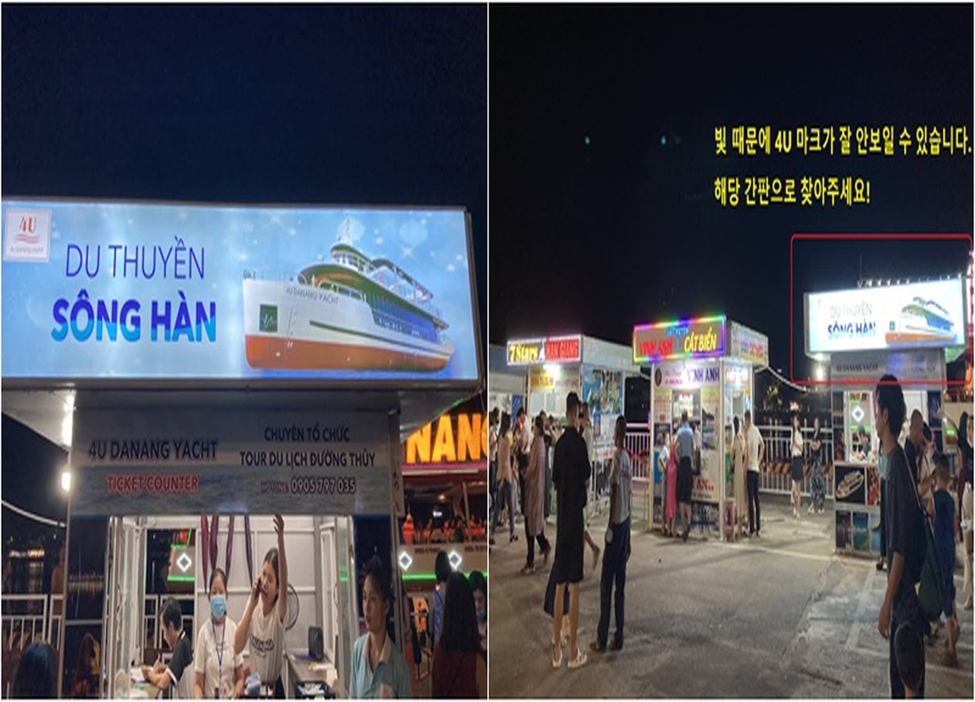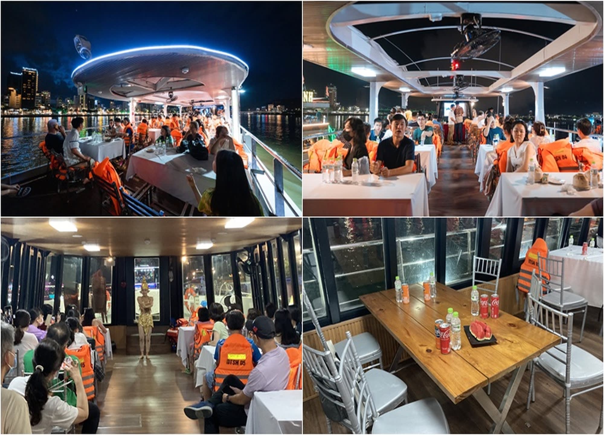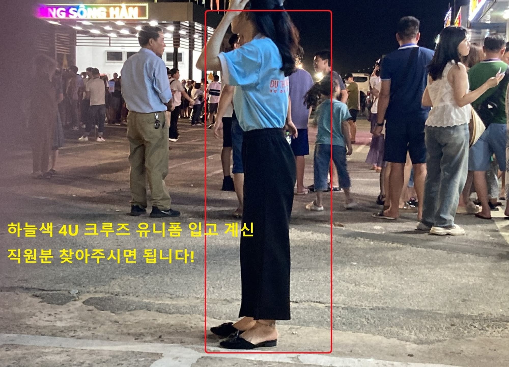 ▶ 주의사항 - 🎫 티켓 안내 좌석 보유 상황이 실시간으로 즉각 반영되지 않아 결제하시고도 예약하신 시간이 불가할 수도 있습니다. 그럴 경우 따로 연락드리고 취소 또는 가능한 날짜 및 시간으로 변경 도와드리고 있는 점 미리 양해 부탁드립니다. - 🔥 용다리 불쇼 매주 금, 토, 일요일 21:00에 용다리 불쇼가 진행됩니다. 해당 요일 20:00경 크루즈를 탑승하시면 아름다운 리버뷰와 함께 선상에서 불쇼를 감상하실 수 있습니다. - 🙉 크루즈 특성상 선내 볼륨이 큰 음악, 노래방 시설을 이용하는분들도 있어 소음발생할 수 있습니다. 기본적으로 조용한 크루즈가 아니라 노래방 시설을 이용하는분들도 있어 소음발생할 수 있습니다 - 📝 고객님의 성함을 필수적으로 알려주셔야 합니다. 다낭시에 손님 명단 정보 제출(바우처에 본인의 정확인 이름 필수) 체크인 시, 이름을 제대로 확인 해야하기 때문에 시간이 걸릴 수도 있습니다. 그러므로, 크루즈 탑승 시간 15분 전까지는 미리 오셔서 체크인 부탁드립니다. - 🪑 좌석 안내 용다리 불쇼가 진행되는 금, 토, 일 20:10 / 20:20 크루즈는 직원의 안내에 따라 테이블이 배정됩니다. 해당 시간에 좌석은 2층에 우선적으로 배정되며, 1층 배정을 원하실 경우 탑승 시 직원분께 요청해주시면 됩니다. (1층 좌석 상황에 따라 배정 가능여부 결정됩니다.) ※ 용다리 불쇼가 진행되지 않는 시간대에는 원하시는 자리에 앉아주시면 됩니다. - 📢변경 및 기타안내 우천 시에도 진행됩니다. 운영사 측에서 사전에 운영을 중단하는 경우에만 따로 연락드립니다. 변경 내용은 투어 진행 날짜 3일 전까지 채널로 연락 주세요. 긴급 연락은 이메일로 발송된 바우처에 기재된 비상 폰으로 연락 주세요. [카카오채널]( http://pf.kakao.com/_wsszxl)