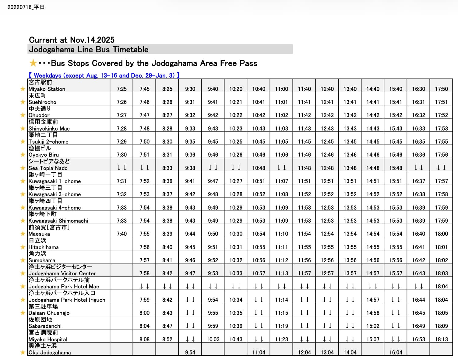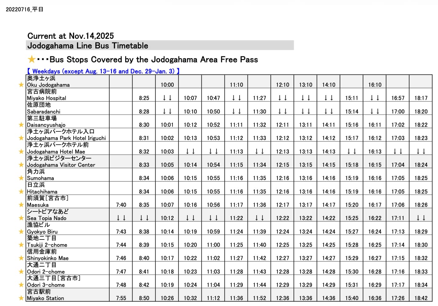 * 이와테현 기타 버스가 운행하는 '미야코역 앞~조도가하마' 구간의 노선버스를 1일 마음껏 이용 가능