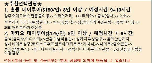 선택 관광은 가이드 또는 인솔자의 주의사항을 숙지 후 신중히 결정하시기 바랍니다.